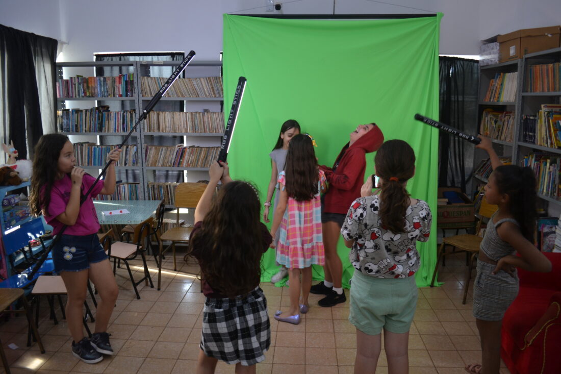 Crianças participaram hoje (10), da oficina ‘Fazendo cinema com celular’, pela programação de férias da Biblioteca Municipal. Amanhã (11), acontece a oficina ‘Fazendo cinema com aplicativos’. A semana terá ainda contação de histórias e feira do livro na praça central.