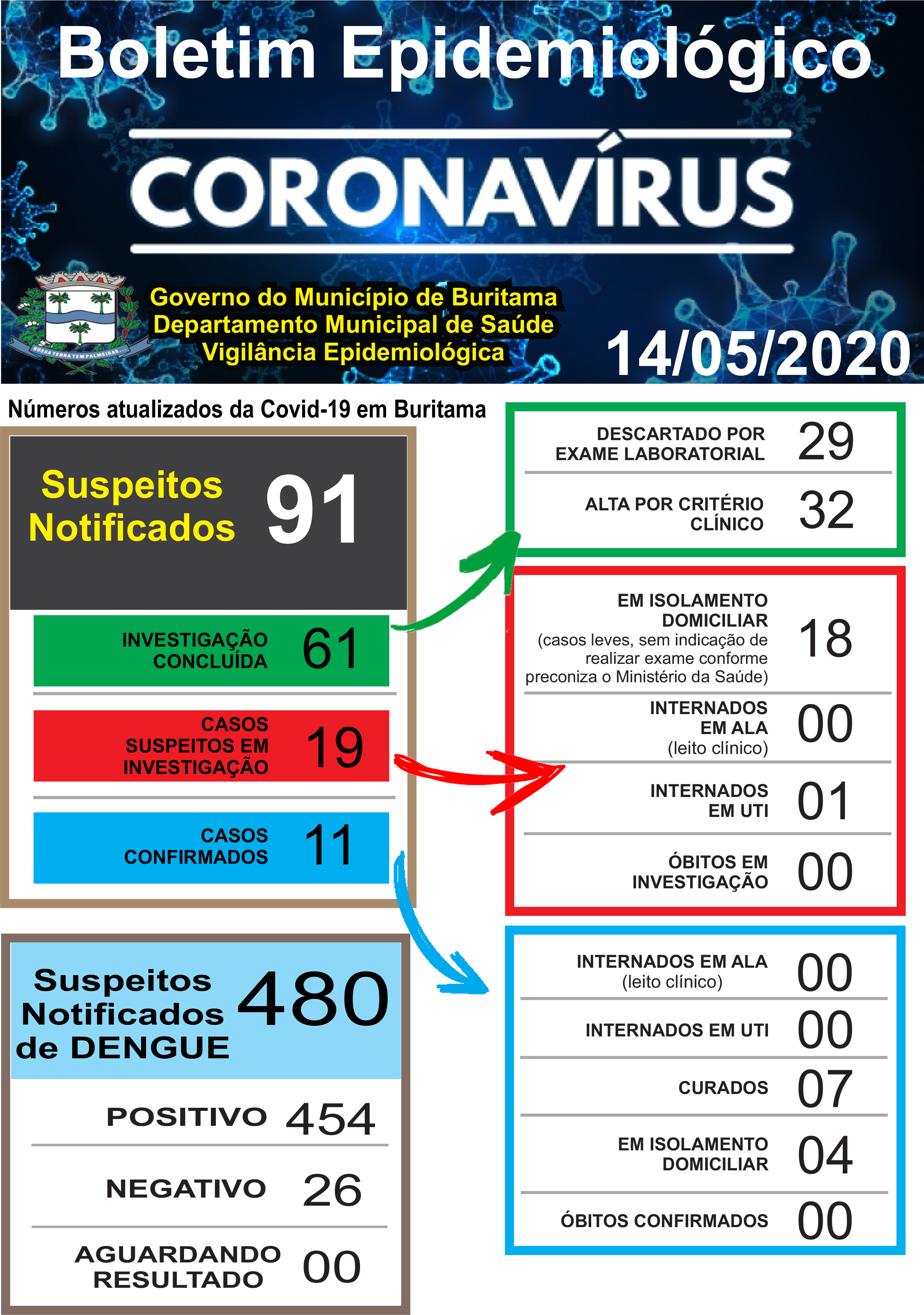 15 de maio de 2020O Departamento Municipal de Saúde atualizou hoje (14), o boletim epidemiológico de Buritama. Neste documento, os moradores poderão acompanhar os detalhes dos números...